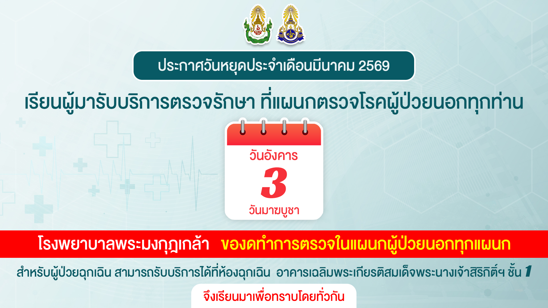 ประกาศวันหยุดประจำเดือนมีนาคม 2569