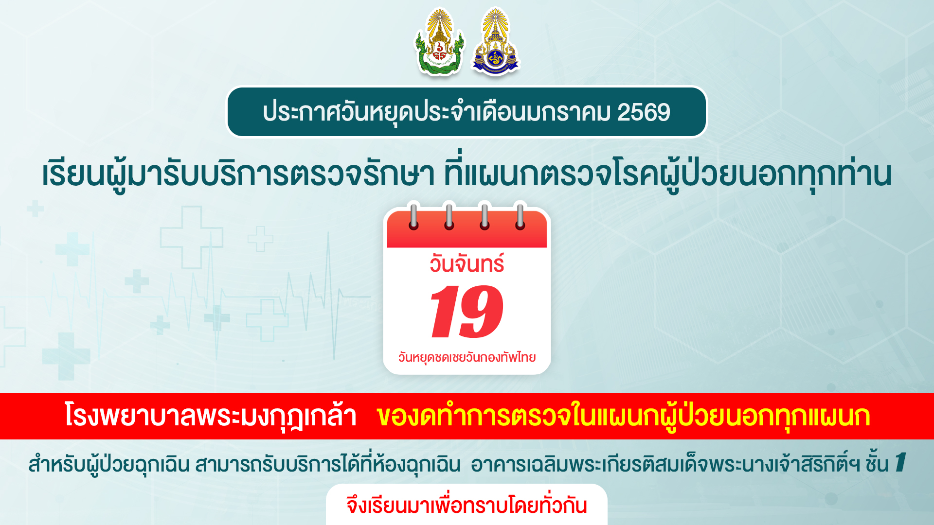 ประกาศวันหยุดประจำเดือนมกราคม 2569